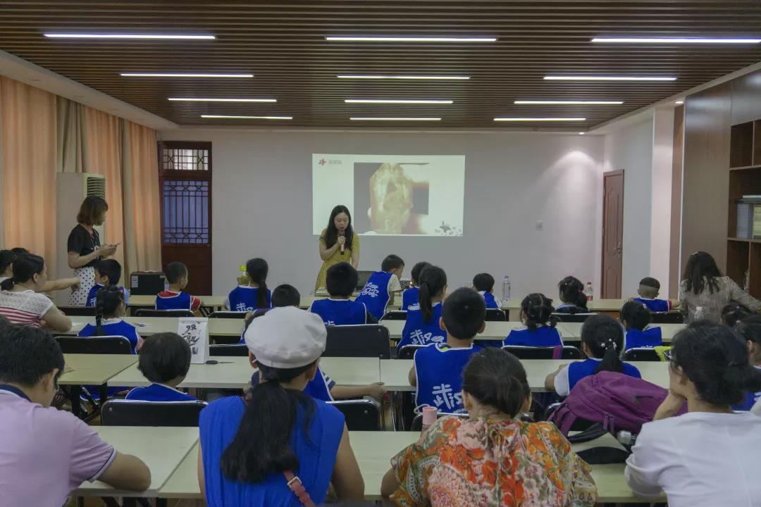 隨后30個親子家庭拿著親手做的團扇,參觀礦標館,近距離接觸五彩繽紛的寶石。程老師說,想要深入認識瑪瑙,需要具備多種學科知識,如化學、結(jié)晶學、礦物學、光學、動力學等。孩子們雖然在課堂上還未接觸,但通過仔細觀察,動手制作,可以激發(fā)他們對神奇的地球科學的熱情,有利于鍛煉他們的綜合科學能力。