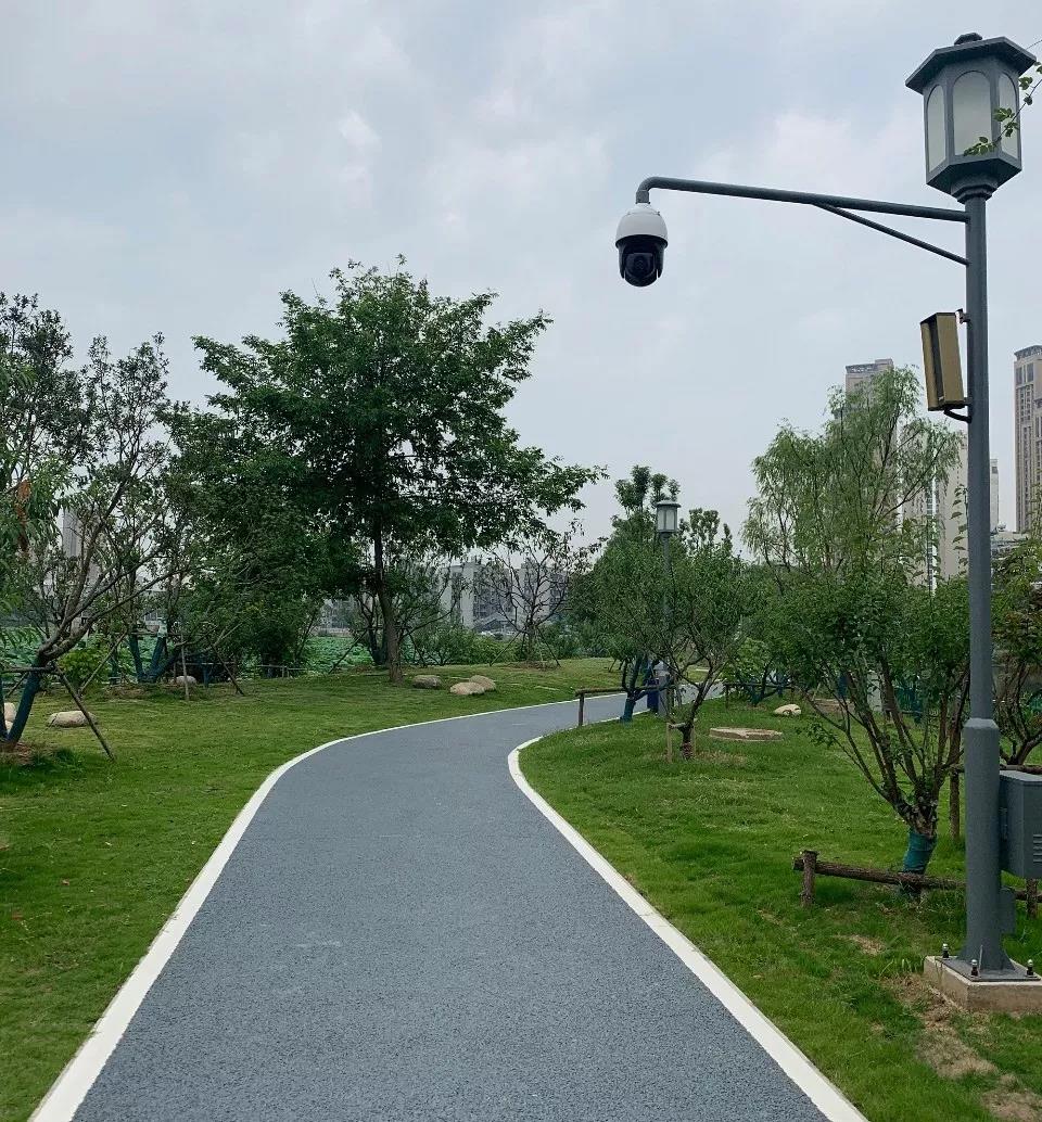 安全設(shè)施上不僅有360度可旋轉(zhuǎn)可聚焦的攝像頭,還有節(jié)能路燈、防水型音響……全長約6.5千米的綠道上共有36套此類設(shè)施,既可保障市民安全,還能沿路被裊裊余音所圍繞。