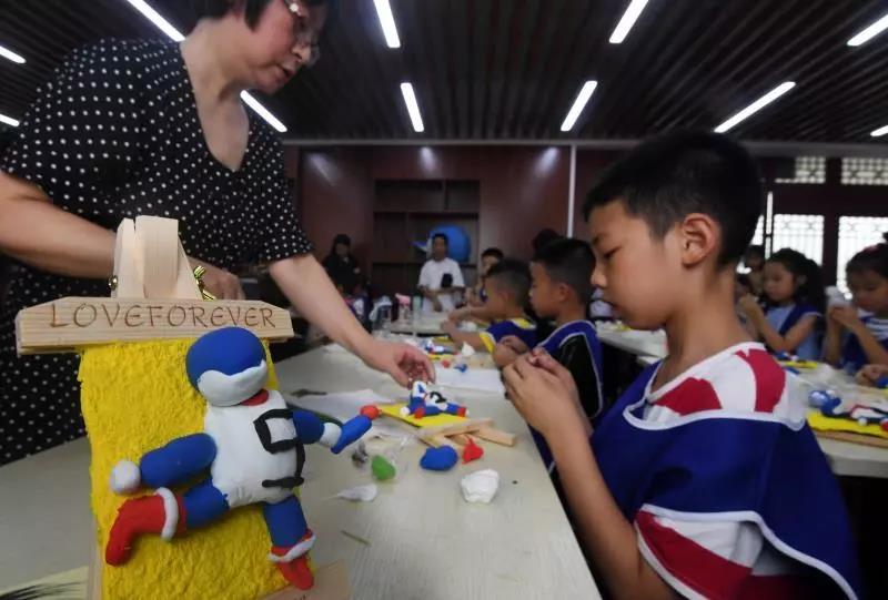 當(dāng)天孩子們還和父母一起用橡皮泥捏吉祥物“兵兵”的形象,透過化石,和遙遠(yuǎn)的中華鱘打招呼。