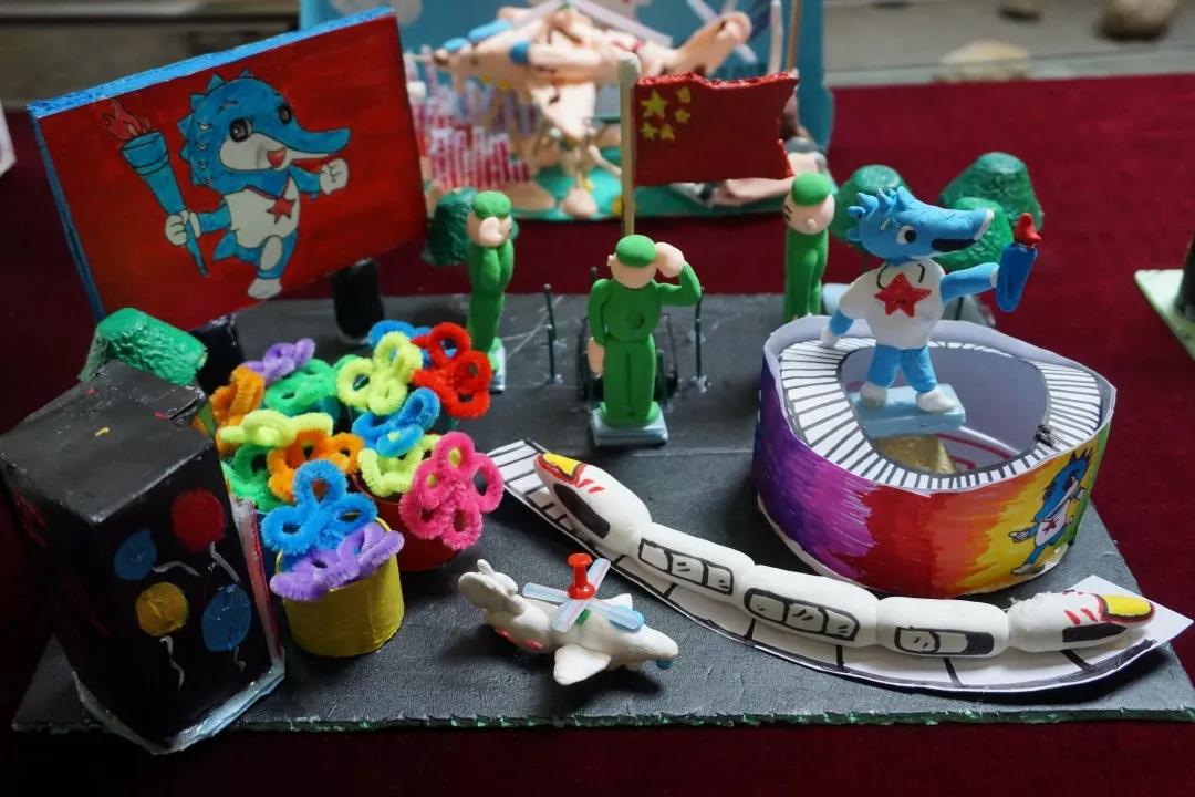 在面向全武漢市進行2個月的作品征集后,軍運主題創(chuàng)意作品大賽共收到來自市內(nèi)各小學(xué)、畫室和市民的300余件作品,150件作品在本次活動中展出,其中60件優(yōu)秀作品獲獎。這些作品密切貼合軍運主題,借助天馬行空的想象力,以創(chuàng)意畫、雕塑、工藝擺件等形式展現(xiàn)出市民們對軍運會的期待與熱情。