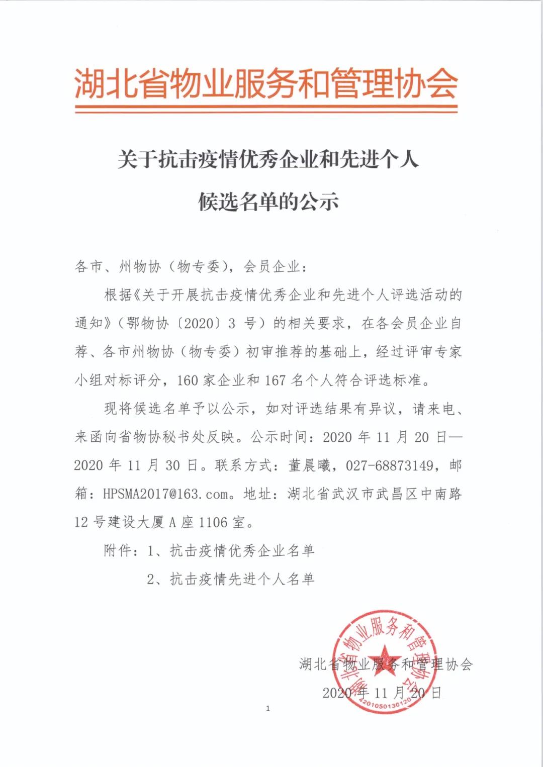 關(guān)于抗擊疫情優(yōu)秀企業(yè)和先進個人候選名單的公示