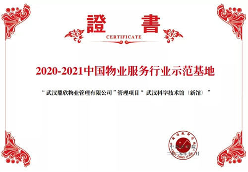 其中, 武漢鼎欣物業(yè)管理有限公司提供服務的“武漢科學技術(shù)館(新館)”獲得“2020-2021中國物業(yè)服務行業(yè)示范基地”。